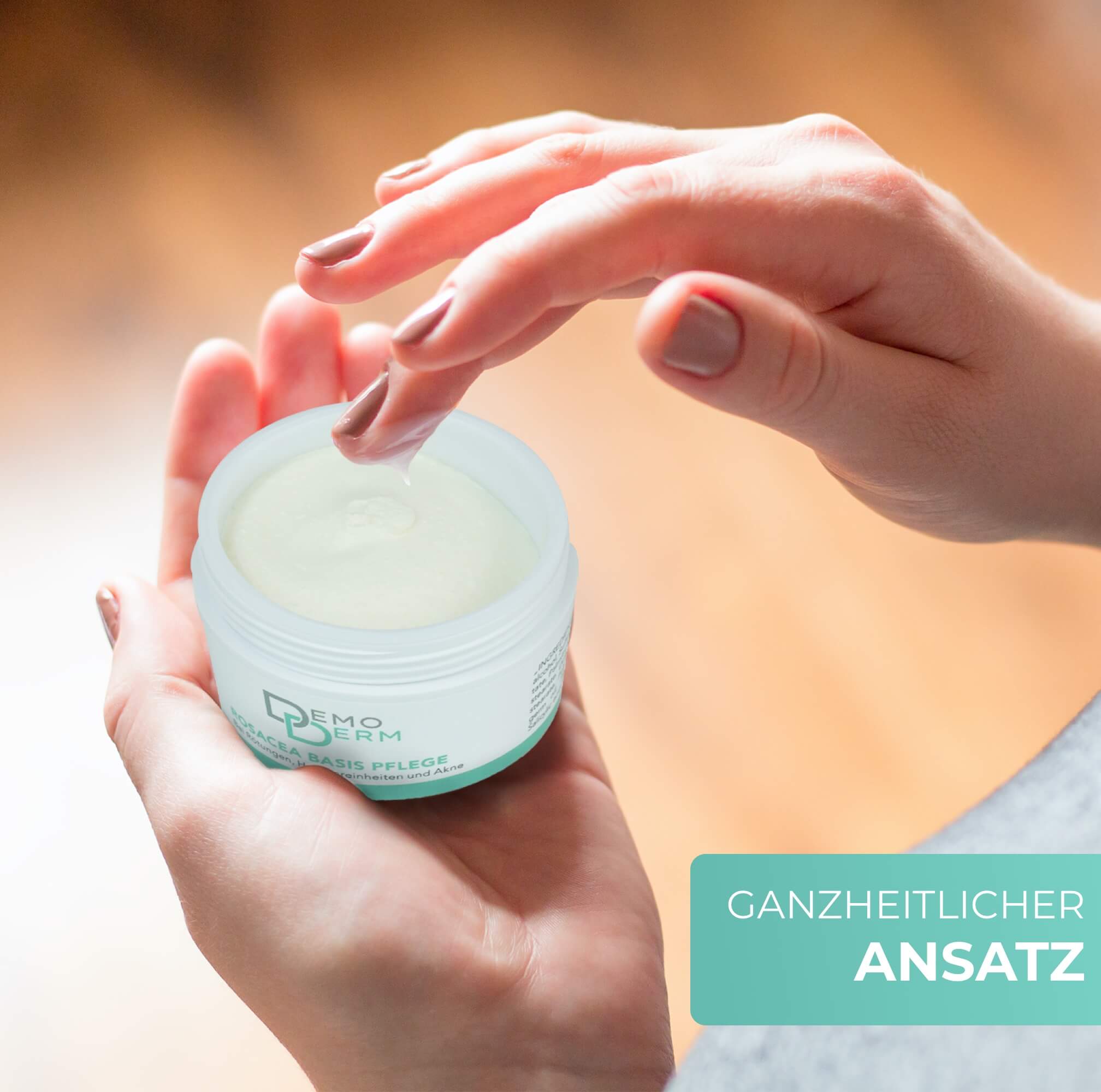 DemoDerm ist mehr als eine Creme - es ist ein Weg. Weniger ist mehr. Meiden Sie das Überpflegen Ihrer Haut. Verzichten Sie in der Zeit in der Sie mit Demoderm cremen auf Reinigungsprodukte und Feuchtigkeitscremes. Je mehr Sie ihre Kosmetik reduzieren, desto schneller kommen Sie an Ihr Ziel. Vielleicht haben Sie am Anfang noch Bedenken, ohne Make-up aus dem Haus zu gehen, vielleicht glauben Sie, ohne spezielle Reinigungsprodukte kommen Sie nicht aus und vielleicht fällt es Ihnen schwer auf die geliebte Feuchtigkeitspflege und Anti-Aging Produkte zu verzichten. Probieren Sie es aus, Sie werden sehen, wie gut es Ihrer Haut tut für ein paar Wochen auf zusätzliche Pflege zu verzichten. Wir unterstützen Sie gerne.
